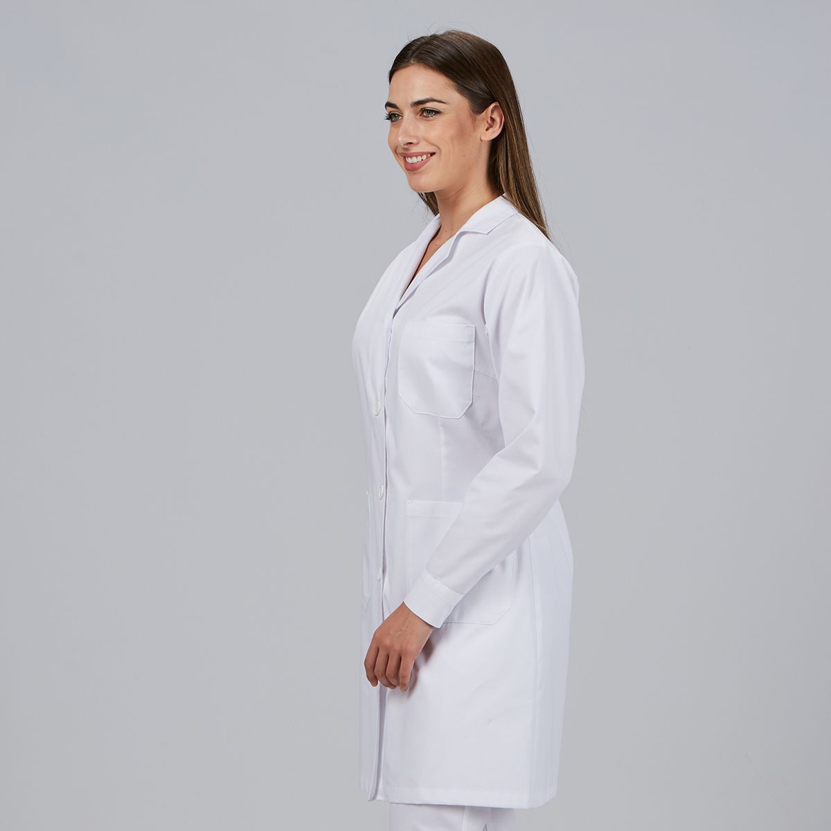 La bata de mujer de manga larga de Garys es el estándar de oro en vestuario profesional, combinando una resistencia excepcional con un diseño impecable. Fabricada en sarga de alta densidad (200 gr/m²), esta prenda está específicamente diseñada para soportar el uso diario y lavados frecuentes, manteniendo su estructura y blanco óptimo. Su corte clásico de 94 cm incorpora un elegante cuello solapa y un cierre central de botones de pastilla, proyectando una imagen de máxima higiene y autoridad en el sector salud y educación. Gracias a su patrón semi-entallado con pinzas estratégicas y un cinturón trasero que define la silueta, la bata ofrece un ajuste femenino y cómodo, convirtiéndose en la herramienta de trabajo indispensable para médicos, farmacéuticas, investigadoras y docentes.
