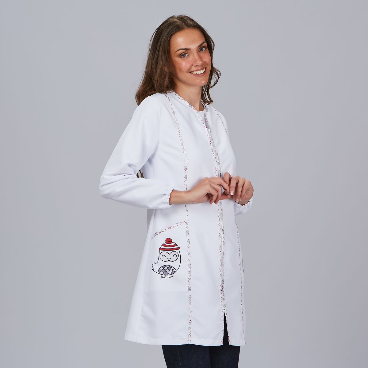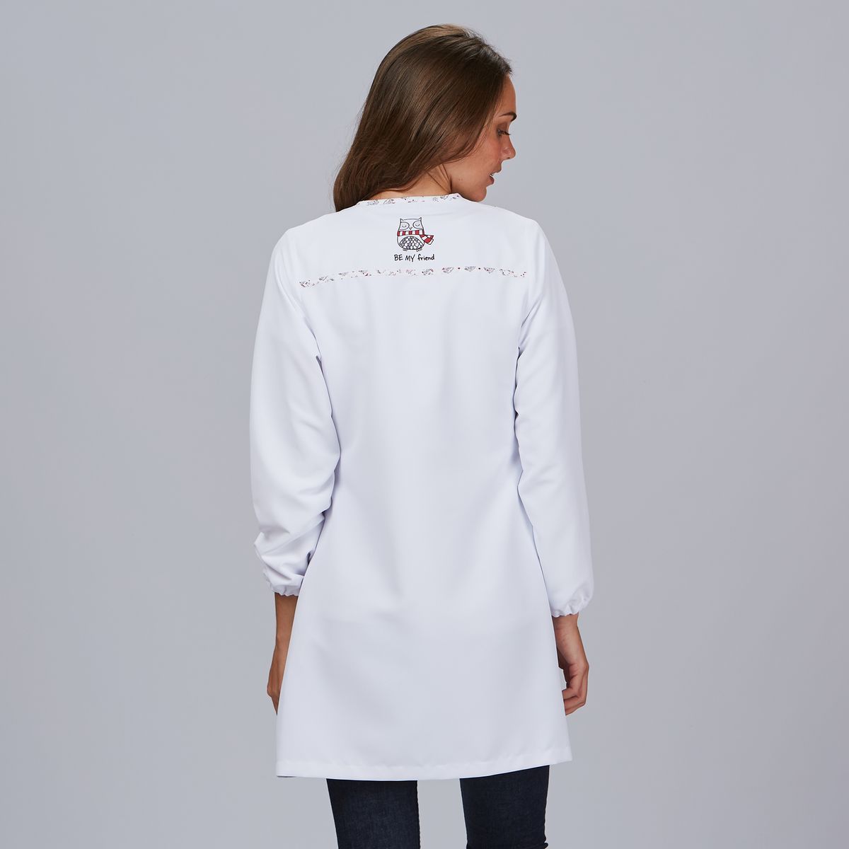 Trabaja con comodidad y estilo con la Bata Be my friend, una prenda diseñada para mujeres que necesitan funcionalidad sin renunciar a la estética. Con un corte semi ajustado y una longitud de 85 cm, esta bata proporciona cobertura, libertad de movimiento y un ajuste favorecedor para largas jornadas en entornos como educación, sanidad, comercio o estética. Está confeccionada en microfibra reciclada, lo que la convierte en una opción ligera, resistente, transpirable y sostenible. Su color blanco aporta una imagen limpia y profesional, mientras que el diseño incluye canesú trasero, costadillos delanteros, y bies en delantero y espalda, logrando un acabado moderno y estructurado. La cremallera central permite una colocación rápida y cómoda, mientras que los dos bolsillos laterales resultan ideales para llevar lo esencial. Sus mangas largas con puños elásticos aseguran un ajuste perfecto y mayor higiene en ambientes dinámicos.