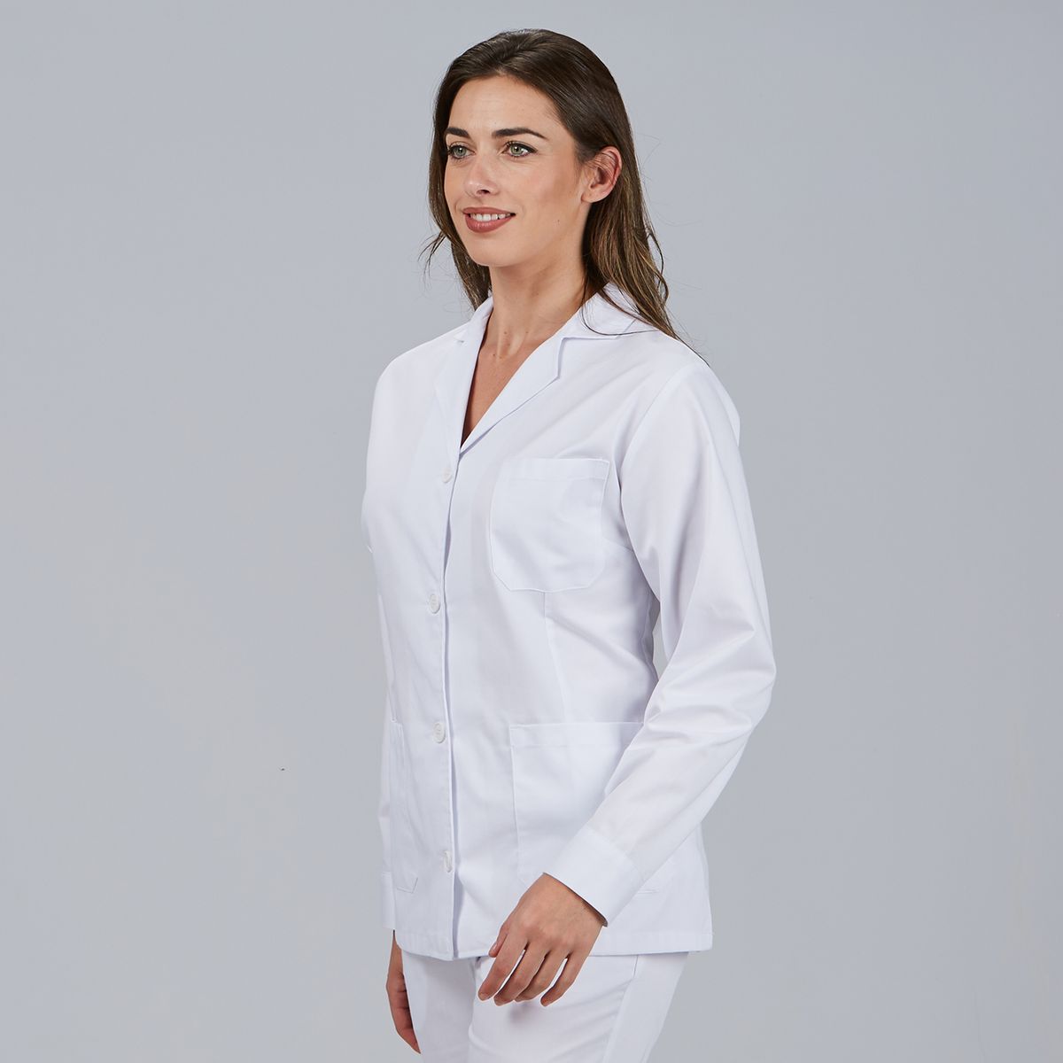 La bata corta de manga larga para mujer de Garys es la solución perfecta para la profesional que busca la estructura de una bata clásica en un formato más dinámico y manejable. Confeccionada en sarga de alta calidad (200 gr/m²), esta prenda destaca por su gran resistencia al desgaste y su facilidad de mantenimiento, garantizando un aspecto impecable durante toda la jornada. Su diseño incorpora un cuello solapa tradicional y un cierre central con botones de pastilla, proyectando una imagen de seriedad y profesionalidad. Gracias a su patrón semi-entallado con pinzas y su cinturón trasero fijo, la bata define la silueta femenina sin apretar, ofreciendo la cobertura total de la manga larga en una longitud de 71 cm que facilita el trabajo en farmacias, clínicas, laboratorios y centros educativos.