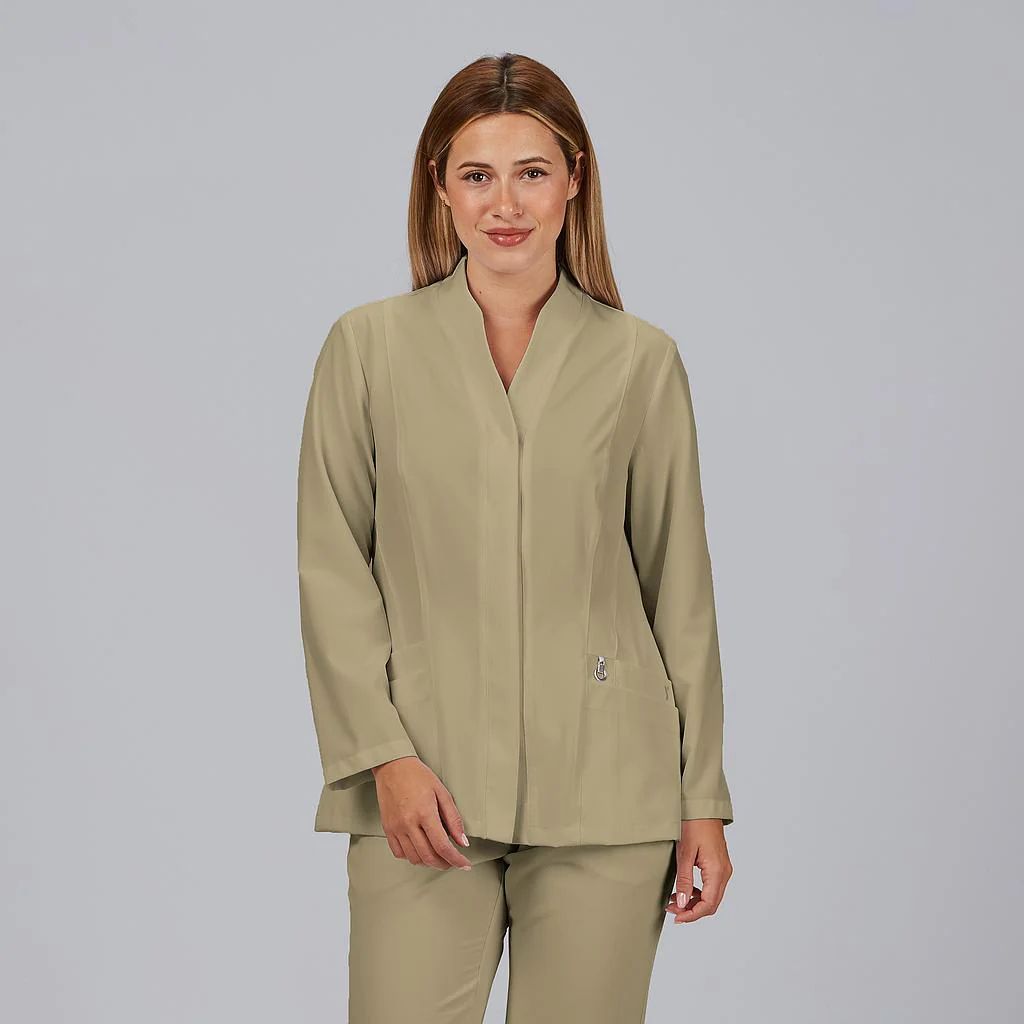 La blusa para mujer Ana de Gary's es una prenda técnica de vanguardia diseñada para ofrecer un confort superior en el ámbito sanitario, estético y clínico. Fabricada en la innovadora Microfibra 360 de 170 gr/m², esta blusa proporciona una flexibilidad multidireccional excepcional, ligereza y una transpirabilidad óptima. Su diseño se caracteriza por un elegante cuello chimenea y cierre central de botones de presión ocultos, logrando una estética limpia y profesional. La funcionalidad está garantizada por sus cuatro bolsillos delanteros, incluyendo un detalle de arandela metálica para el colgado seguro de identificaciones o accesorios. Con un corte M2 semiajustado que realza la figura femenina, canesú en la espalda para un ajuste anatómico y un tejido de secado rápido que no necesita plancha, la blusa Ana es la solución definitiva para profesionales que exigen durabilidad y elegancia en su día a día laboral.