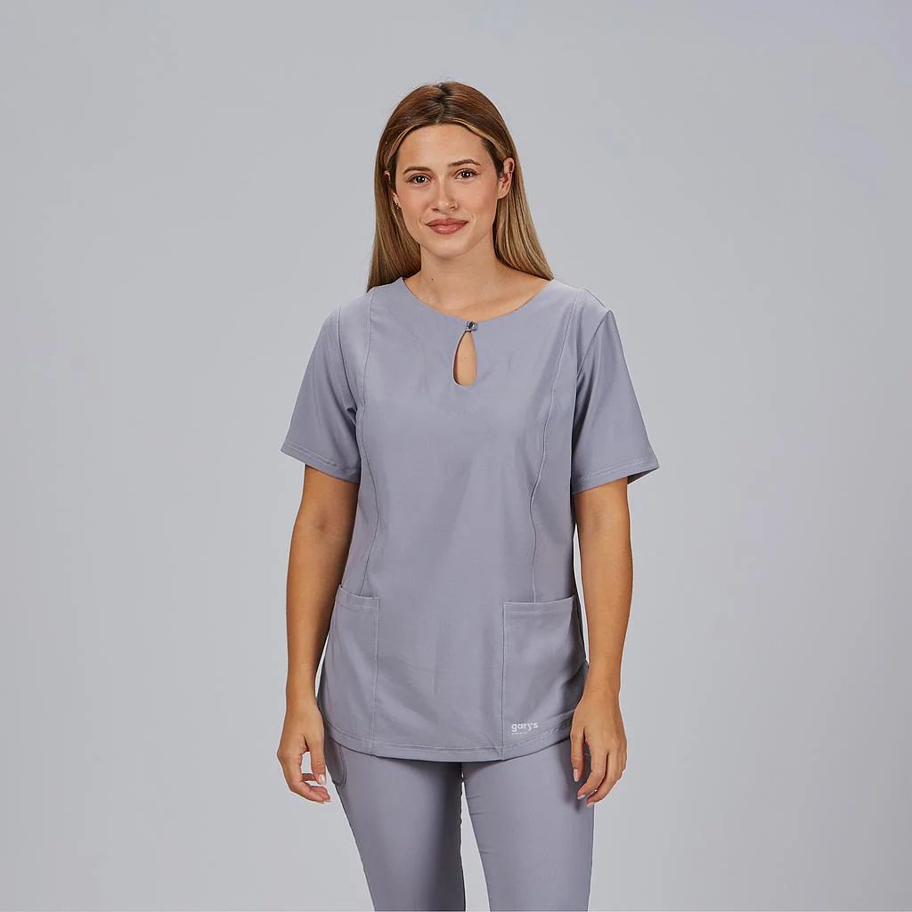 La blusa para mujer Maria de Gary’s es una prenda de diseño refinado proyectada para ofrecer el máximo confort en entornos profesionales exigentes. Fabricada en el innovador tejido Extrafiber Fine de 165 gr/m² (93% poliéster y 7% elastano), esta casaca destaca por su ligereza y su elasticidad multidireccional, garantizando una libertad de movimiento absoluta. Su diseño se distingue por un elegante cuello redondo con abertura en forma de lágrima y un botón decorativo que aporta un toque de distinción. La ergonomía está cuidadosamente estudiada mediante mangas cortas de corte ranglan y costadillos técnicos en delantero y espalda, logrando un ajuste M2 semiajustado que estiliza la figura con suavidad. Equipada con dos bolsillos frontales funcionales y con un largo de 64 cm, la blusa Maria es la opción ideal para profesionales de la salud, estética y educación que buscan un uniforme transpirable, de fácil mantenimiento y con una estética moderna y pulida.