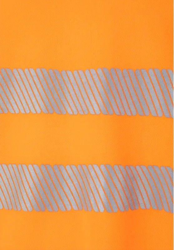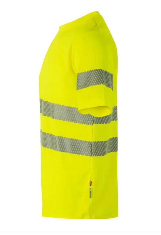 Camiseta de alta visibilidad de manga corta con Reflatex, bandas reflectantes más elásticas y modernas. Cuello redondo de canalé. Cintas reflectantes, segmentadas termofijadas, en torso y mangas. Cinta de tejido base que cubre la costura del cuello. Disponible en amarillo o naranja.