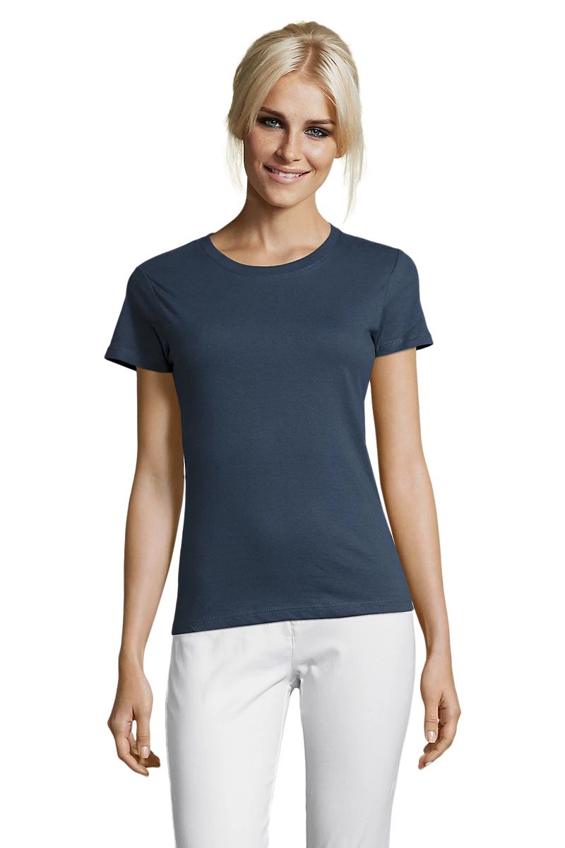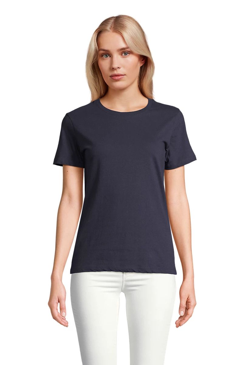 Camiseta básica de manga corta, entallada para mujer, disponible en gran variedad de colores.