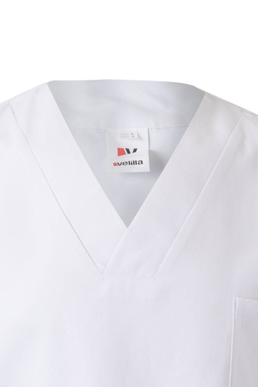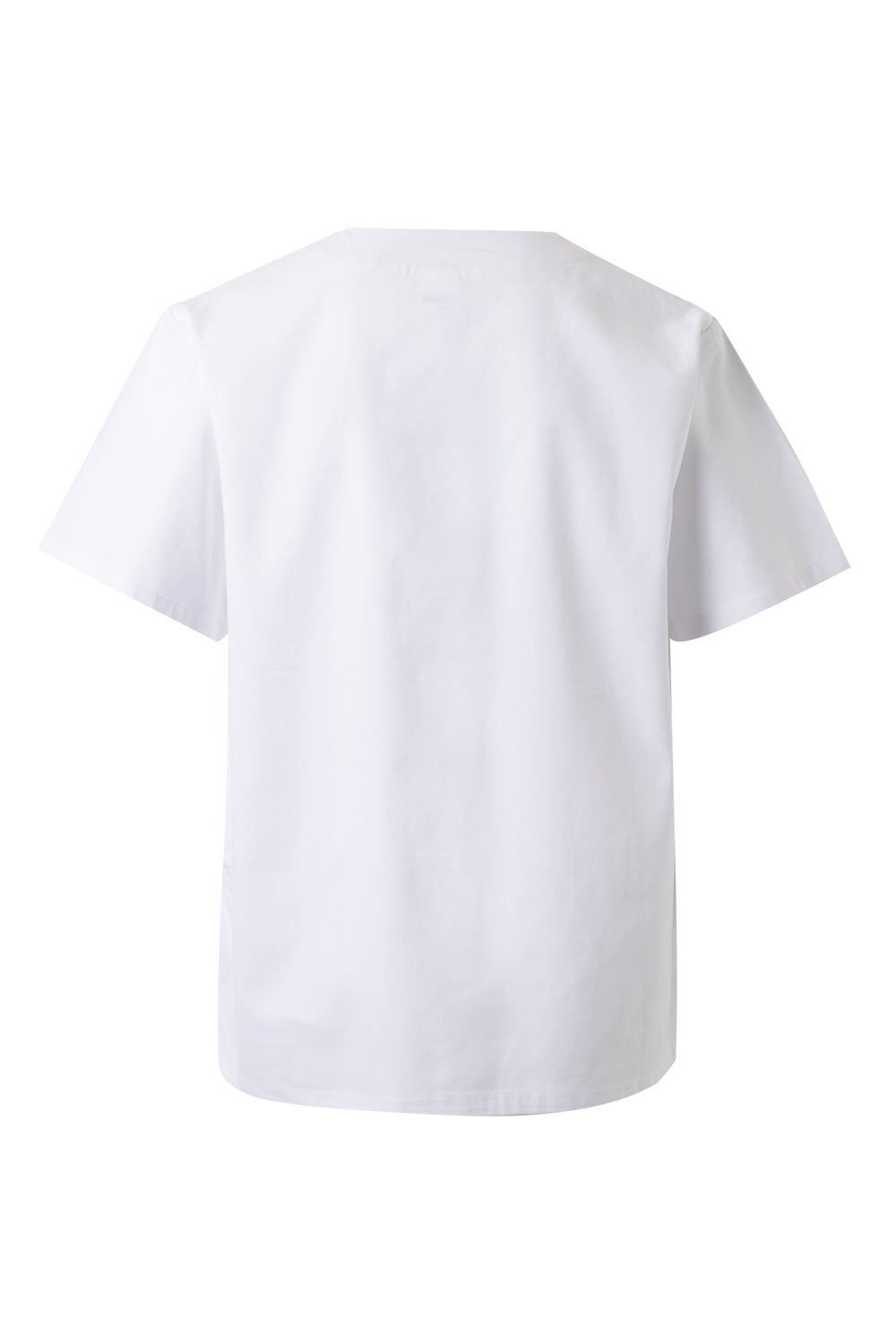 Camisola pijama 100% algodón con tejido de propiedades antiestáticas. De manga corta y cuello pico. Cuenta con tres bolsillos.