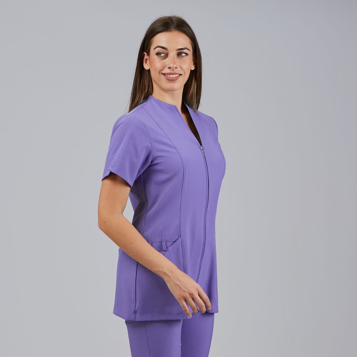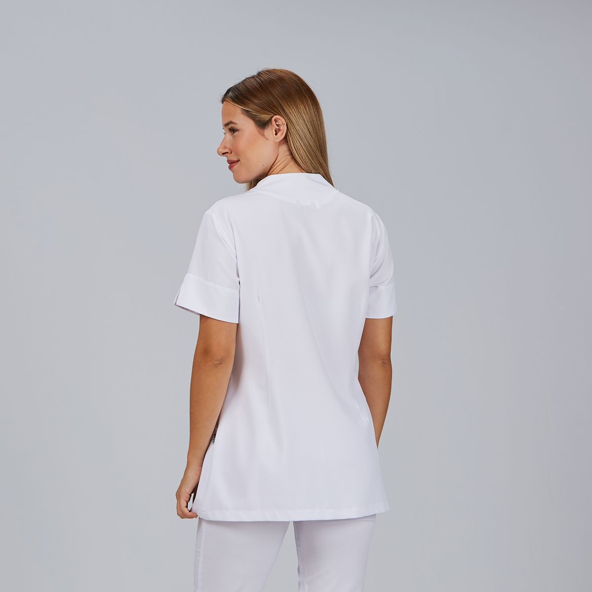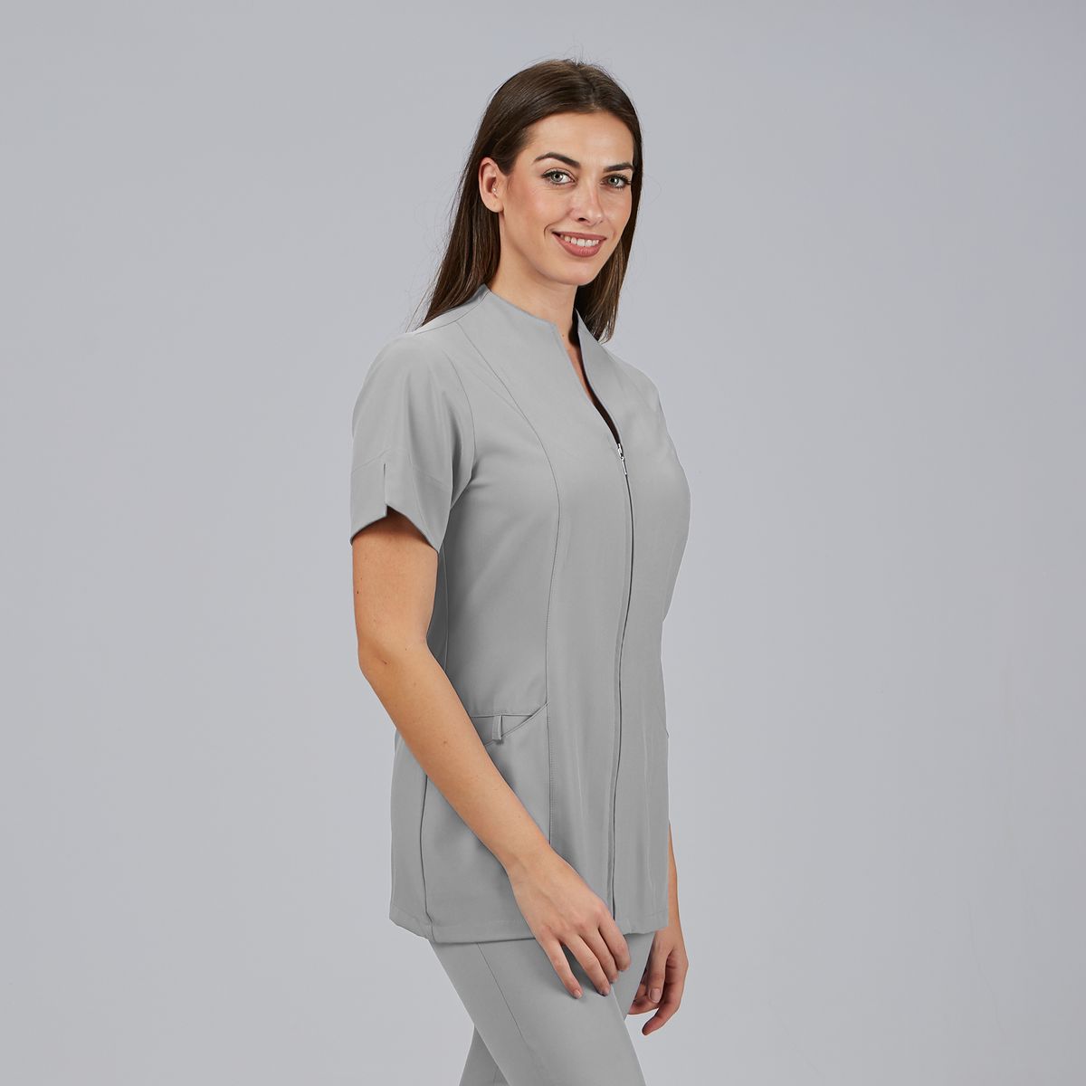 La blusa para mujer Yanira de Garys es una pieza vanguardista diseñada para profesionales de la salud que buscan la máxima libertad de movimiento sin renunciar a una estética sofisticada. Confeccionada en el revolucionario tejido Microfibra 360, esta casaca ofrece una elasticidad multidireccional que acompaña cada gesto, eliminando cualquier restricción durante la jornada laboral. Su diseño único cuenta con un elegante cuello chimenea y un práctico cierre central mediante cremallera, lo que permite una puesta rápida y cómoda. Gracias al tratamiento antibacteriano Silvadur™ con iones de plata, la prenda garantiza una frescura prolongada y protección contra olores. Con un corte semi-ajustado y aberturas laterales, la blusa Yanira es la elección ideal para hospitales, clínicas estéticas y centros de bienestar que exigen un uniforme técnico de alto rendimiento y fácil mantenimiento.