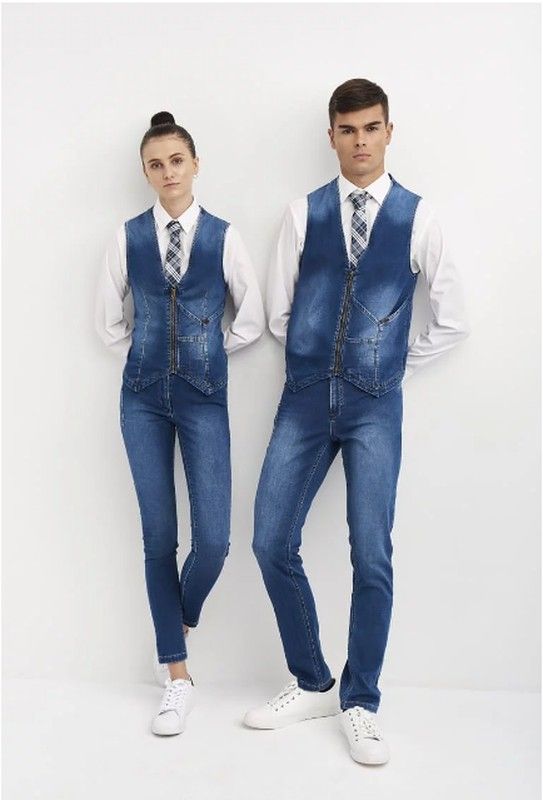 Monza innova en una pieza de tradición clásica, el chaleco de camarero. Se actualiza esta prenda gracias al tejido punto denim y detalles como el cierre con cremallera, el bolsillo multifunción y el lavado a la piedra.La marca difumina las líneas entre la moda y el workwear en la colección de sala Monza Ready to Serve, dotando de mayor protagonismo al tejido denim, un tejido de culto en el streetstyle.