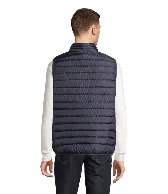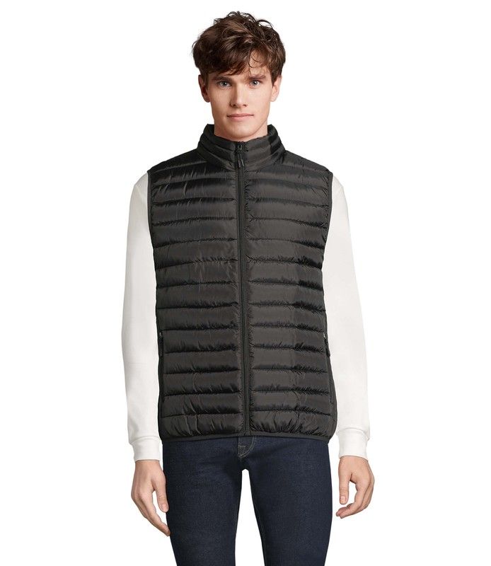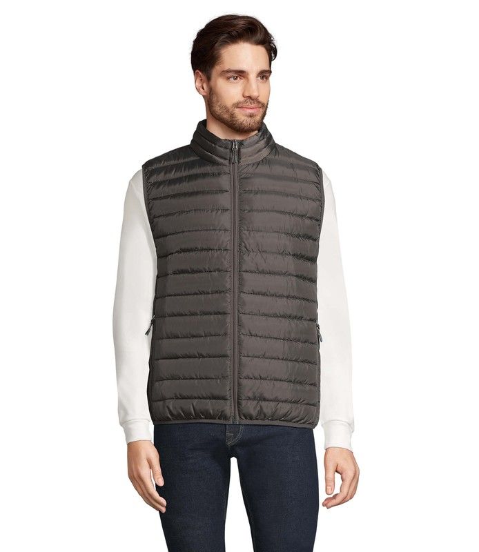 Chaleco ligero para hombre con cuello alto. Con bolsillos laterales con cremallera de nylon tono sobre tono. En color negro, gris, azul marino o verde army. Disponible el mismo modelo para mujer y para niños.