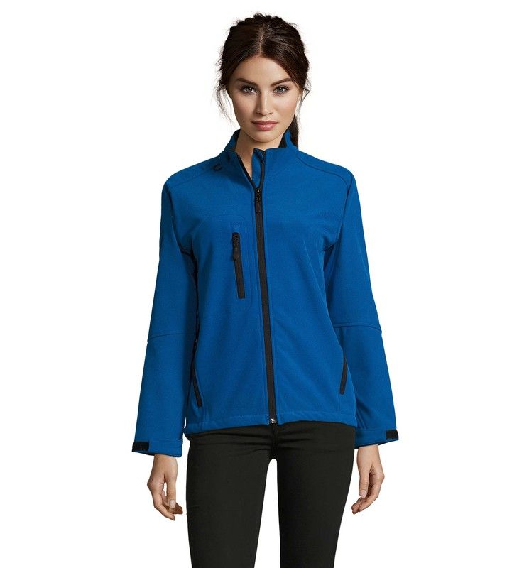Chaqueta de mujer Softshell con cremallera, disponible en varios colores. 2 bolsillos laterales con cremallera y un bolsillo en el pecho. Puño ajustable con velcro.