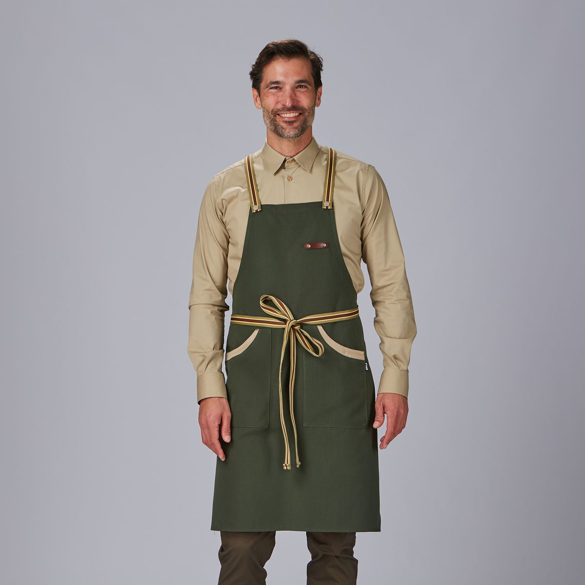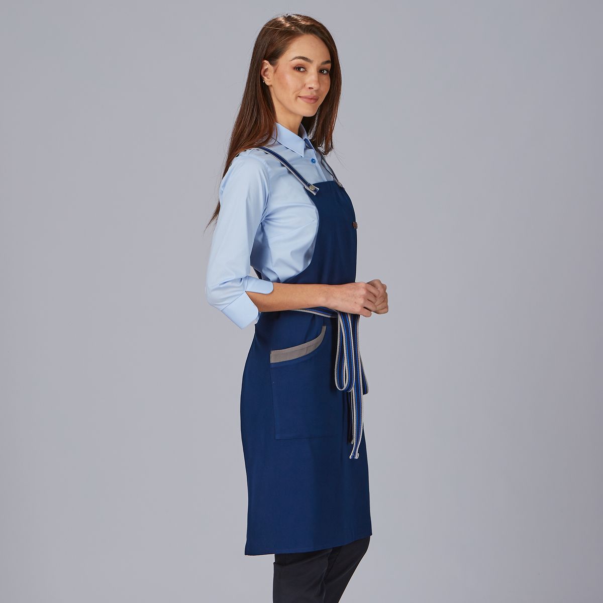 El Delantal Peto bicolor cinta rayas 86X74cm es una prenda funcional y elegante, diseñada para profesionales que buscan resistencia, comodidad y un toque distintivo en su vestuario laboral. Confeccionado en tejido Panamá, garantiza durabilidad y fácil mantenimiento, ideal para sectores como la hostelería y la restauración. Disponible en colores marino y verde caqui, ofrece un diseño moderno y versátil. Este mandil combina diseño, practicidad y materiales de alta calidad, convirtiéndose en una opción ideal para quienes buscan destacar con una imagen cuidada y profesional.