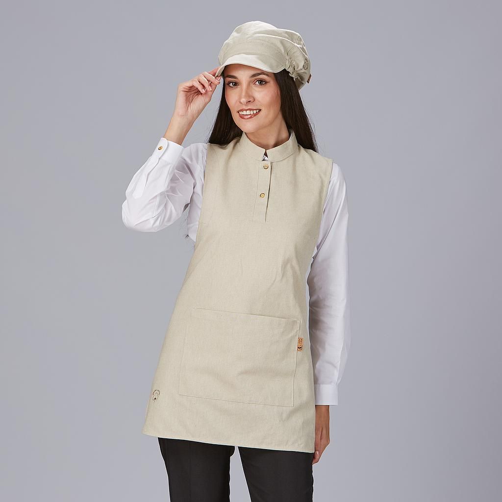 Gorra unisex de cocina tipo panadero, con visera semi rígida. Modelo confeccionado en 100% algodón orgánico, disponible en color beige o gris marengo. Cuenta con goma en la parte trasera para recoger el pelo de forma cómoda. Ideal como complemento para uniforme en hostelería y restauración, panaderías y pastelerías o comercio de alimentación.