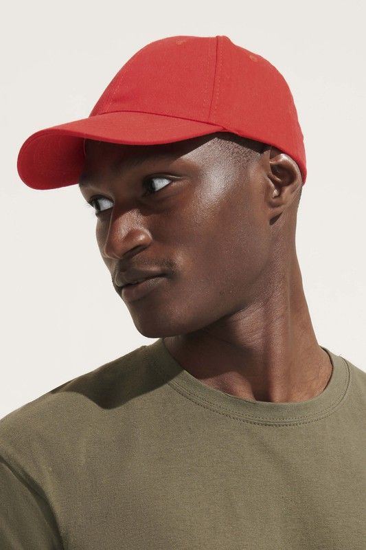 Gorra unisex de 6 paneles. Con cinta ajustable con tira de Velcro, banda de protección, agujeros de ventilación y visera y panel frontal reforzados.