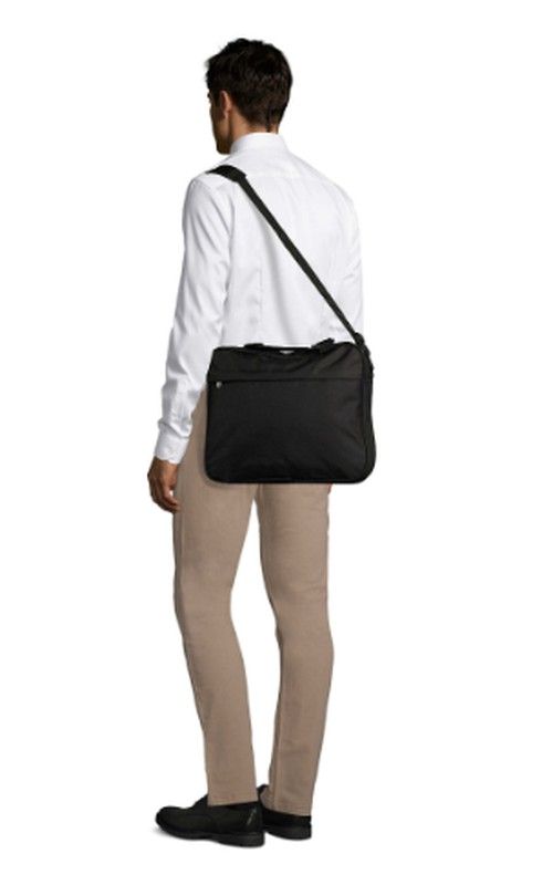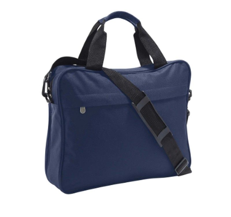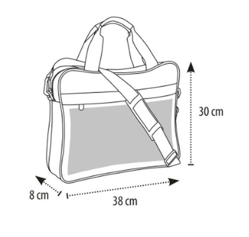 Maletín porta documentos, disponible en color negro o marino. Con doble compartimento. Cierre del compartimento y bolsillo frontal por cremallera. Pequeño bolsillo con cremallera en la parte central. Asas de transporte de nylon. Bandolera de nylon ajustable y extraíble.