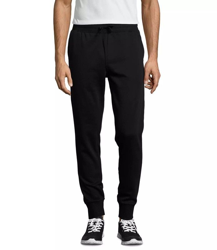 Pantalones de jogging para hombre de corte ajustado. 2 bolsillos italianos y un bolsillo de parche trasero. Cordón en la cintura para anudar. Acabado canalé en la cintura y el bajo.
