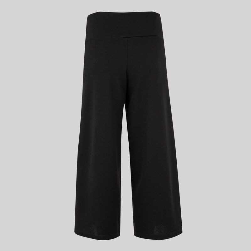 Este pantalón culotte presenta piernas muy anchas que crean una imagen de sofisticación y comodidad. La elección de un diseño sin bolsillos realza su estilo minimalista.Fabricado en un tejido Punto Crepe Grueso de alta calidad, este pantalón ofrece durabilidad, resistencia y un ajuste perfecto.La cintura de doble tejido no solo garantiza un ajuste cómodo, sino que también contribuye a una apariencia pulida y profesional. El bajo de 2 cm de ancho le agrega un toque de elegancia.